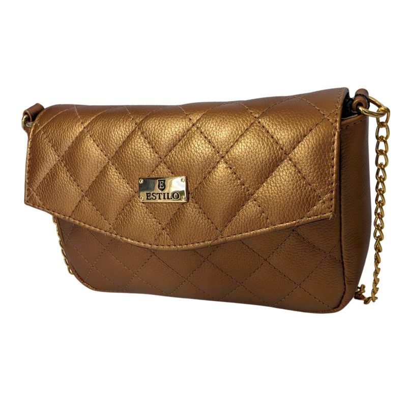 Bolsa Tiracolo Marrom Matelassê em Couro Legítimo