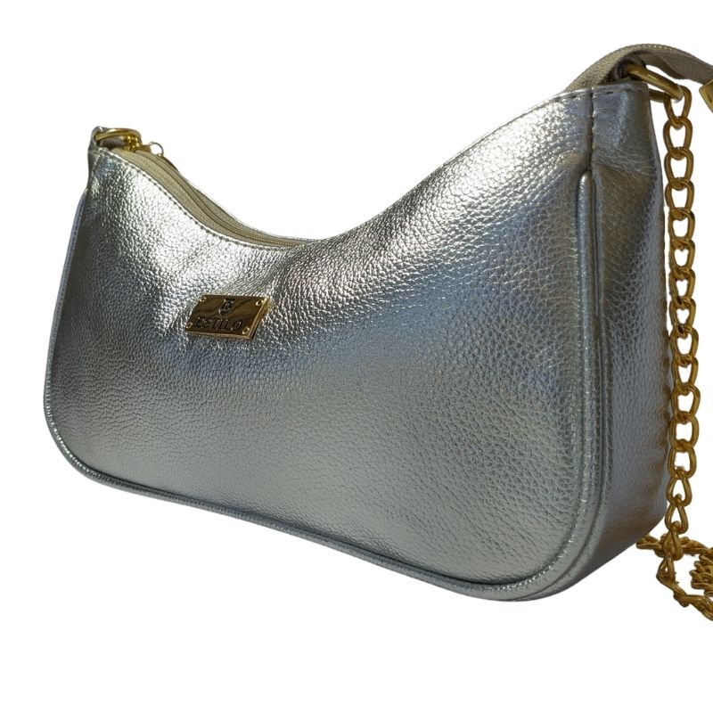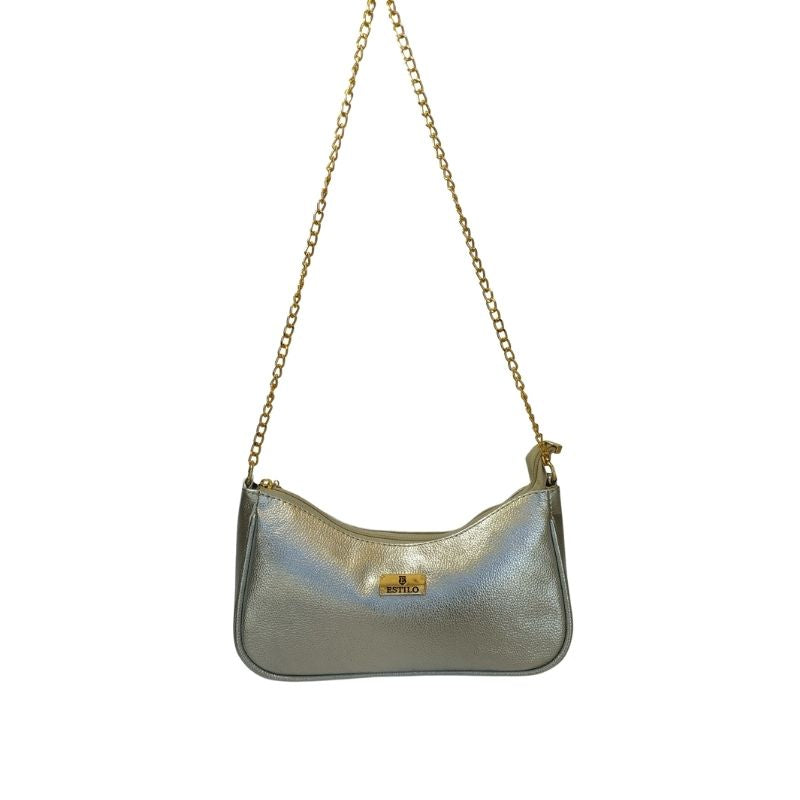 Bolsa Prata Baguette em Couro Legítimo