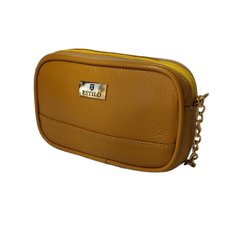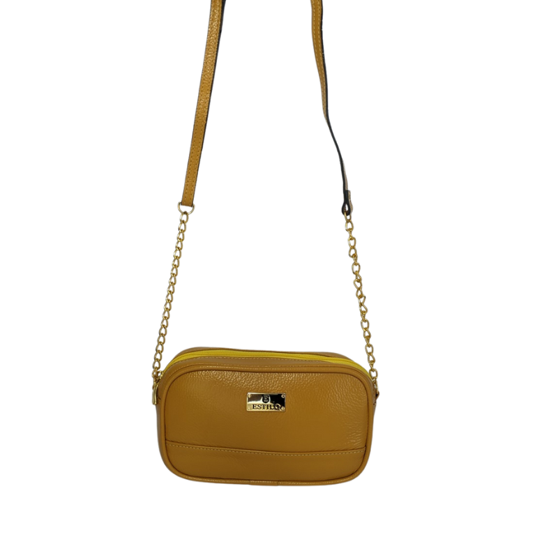 Bolsa Tiracolo Mostarda em Couro Legítimo