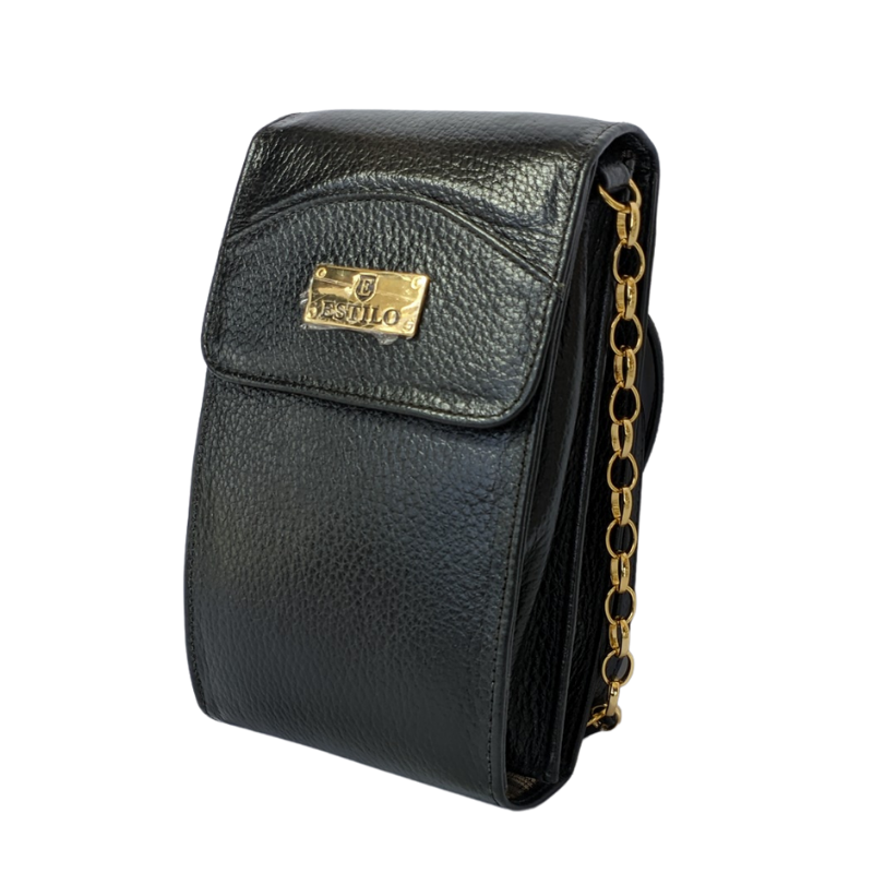 Este porta celular em couro legítimo preto oferece proteção sofisticada para seu aparelho. Com acabamento refinado e design compacto, é ideal para quem busca aliar durabilidade e estilo no dia a dia. Perfeito para manter seu celular seguro e acessível com elegância.