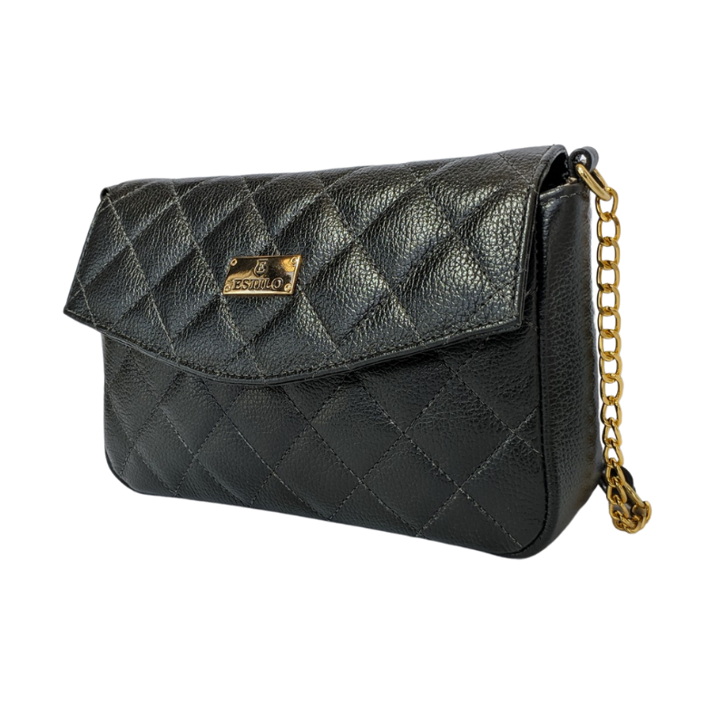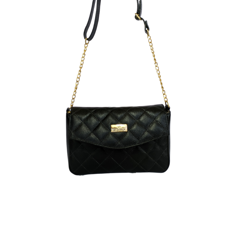 Bolsa Preta Tiracolo Matelassê em Couro Legítimo