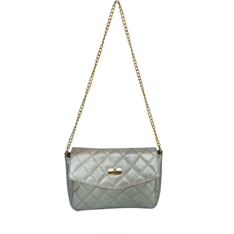 Bolsa Prata Tiracolo Matelassê em Couro Legítimo